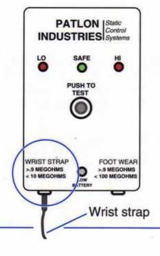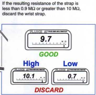 Para descargar seguridad y proterty electrostático, la resistencia debe no alta (descarga lenta) y no baja (peligro cuando el flujo a través del cuerpo humano). Una correa de muñeca buena debe tener resistencia entre 0.9Mohm a 10Mohm. Tomo un trocito (a prueba) de un voltaje de prueba destornillador y medirlo. Su resistente es 2.2Mohm así te conecto 2 x 1Mohm resistencias en serie para hacer resistencia de correa para la muñeca. Por ejemplo, la electroestática es 35000V hará 0.0175mA de la corriente a través del cuerpo, que totalmente seguro tanto para usted y su dispositivo. También pueden utilizar resistencias 1/4W.