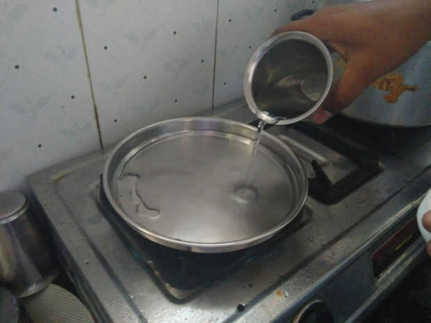 Llene un recipiente de metal (placa) con agua y empezar a hervirla.
