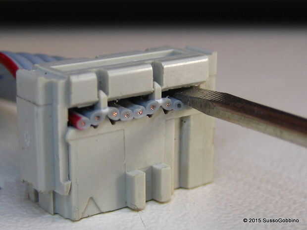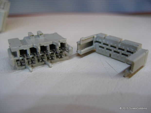 Mira a los lados, algunos tienen bisagras de plástico pequeñas (cables IDE generalmente los tienen), mientras que estos conectores más pequeños simplemente deslizar en las ranuras.
