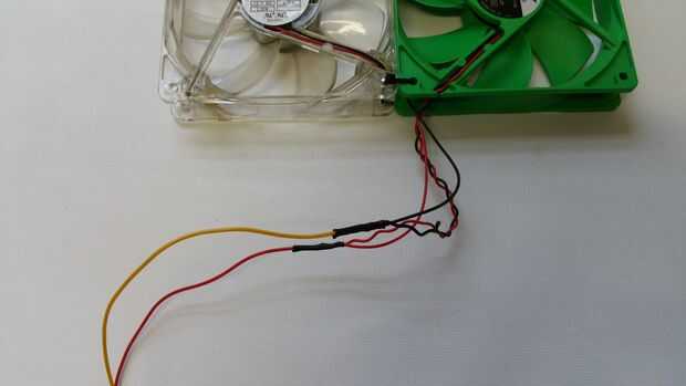 Yo simplemente Pele los cables de cada ventilador, calor y soldadura encogen juntos para evitar un cortocircuito accidental.