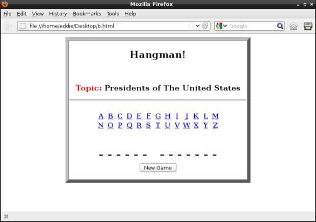 Document.Write ('< tipo de entrada = "botón" valor = "Nuevo juego" ' +