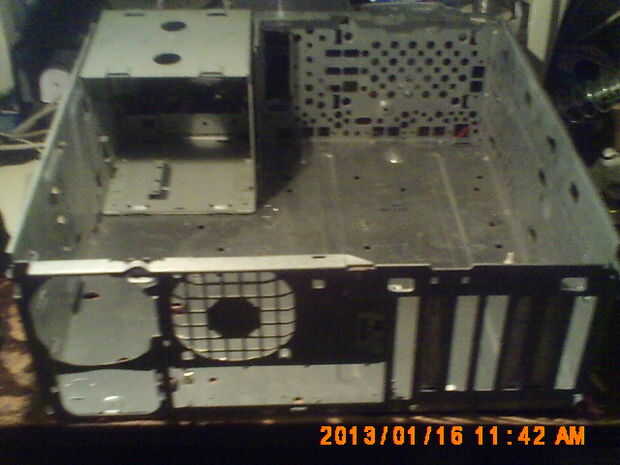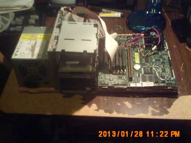 Antigua caja para Banco de pruebas partes de la computadora antes de la temporada final.