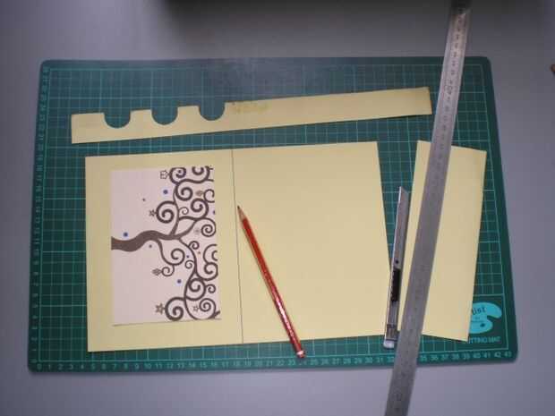Recorta la cartulina nueva, de un tamanno mayor el doble la vieja. Marca la mitad y doblala.