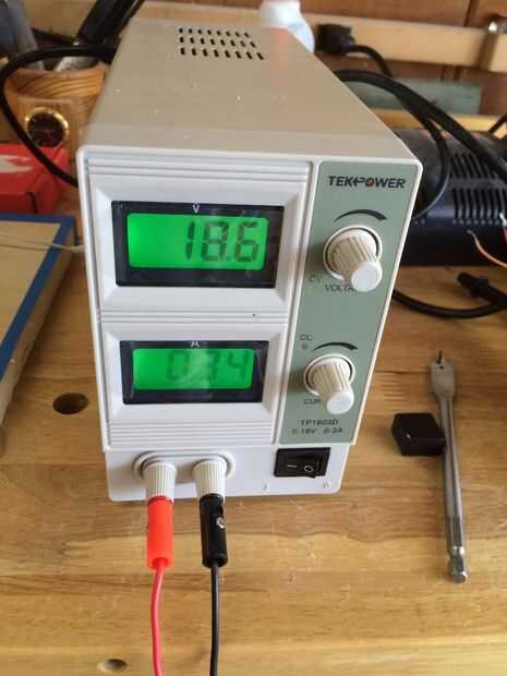 Yo esto alimentado con una fuente de alimentación variable escritorio 18 V (ver imagen). El poder debe ser enchufado en los restantes dos orificios en el escudo, el poder y la tierra.