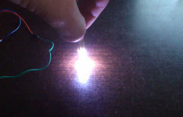 Esto utiliza un LED blanco de una linterna desechado. Hace una gran diferencia como se puede ver.