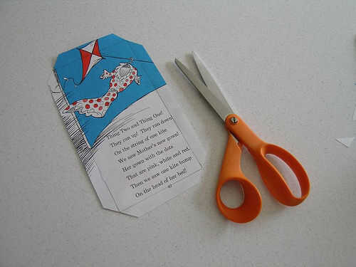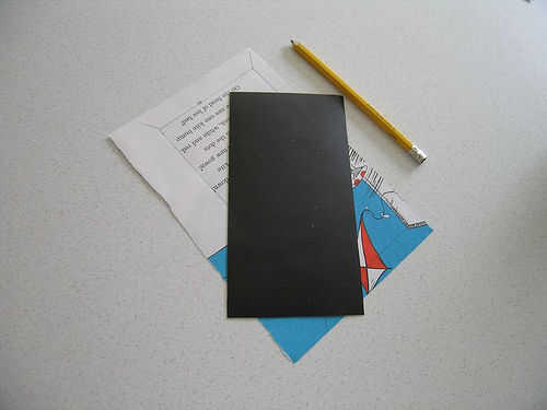 He utilizado una página de un libro de Dr. Seuss. Mantenga el imán detrás de la imagen que desea utilizar y a una luz o una ventana. Coloque el imán para captar lo que te gusta de la página. Coloque el imán y la página boca abajo sobre una mesa y traza alrededor del imán. Ahora puede recortar alrededor de la traza dejando sobre una mitad de pulgada todo el camino alrededor. Cortar las esquinas como se muestra en la tercera foto.