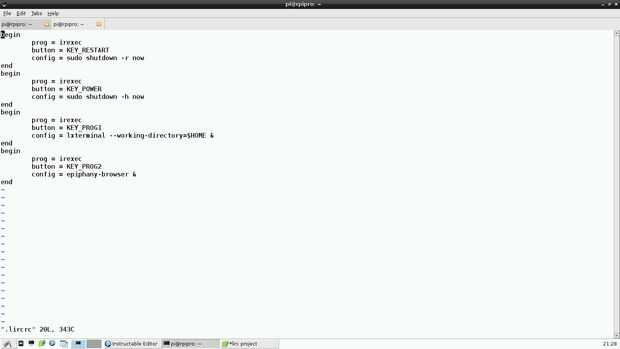 Crear una nueva configuración de lircrc y guárdelo como .lircrc en el directorio home