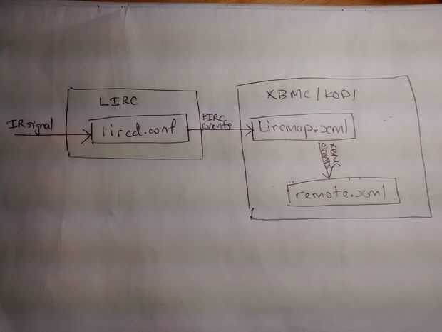 El lircd.conf y remote.xml se aplican diferentemente lo que necesario para XBMC/KODI asignar eventos (LIRC) con eventos XBMC pulsador de control remoto. Esta función de asignación se implementa en Lircmap.xml