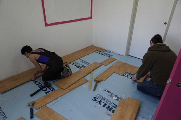 Alinear las tablas del suelo para que coincidan la lengüeta y ranura.