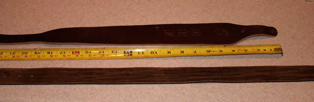 First. miden aproximadamente 20-24" en el extremo libre de la banda (el extremo con los agujeros en ella).  Mi medido contra la hombrera de la eslinga ya tenía.