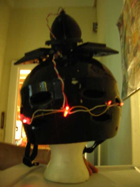And Voila! El casco terminado. He decidido llamarlo el navegador porque me recuerda a Alien/Robot/nave del vuelo del navegante por alguna razón. He estado probándolo en mis paseos en bicicleta a trabajar esta semana y hasta ahora tan bueno! Os dejo trabajo cerca del atardecer y los luz clics en sobre una milla más o menos en cuando se pone oscuro. Pensé en limpiar un poco y pintando pero decidido de me gusta el look de basura Tech por ahora.