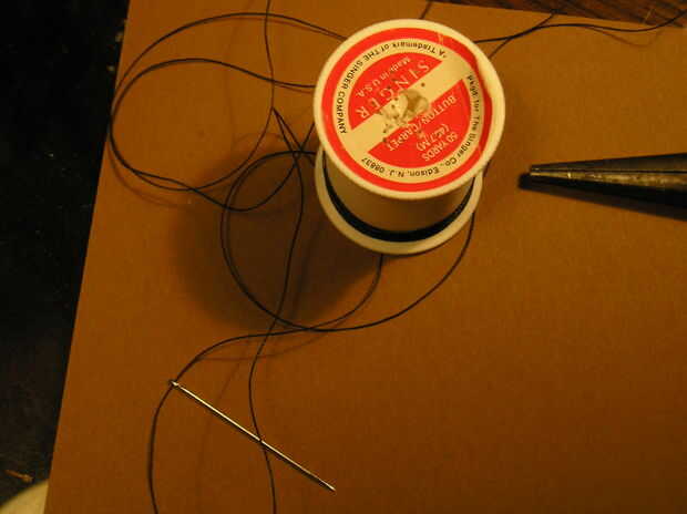 Utilizando los alicates de punta y la uña se muestra, la uña es caliente muy caliente en la llama del quemador y entonces empujada a través de dos capas de plástico Junta. De esta manera los orificios estén alineados y pueden ser roscados con el needel.