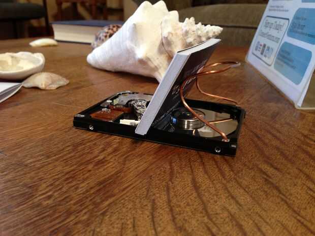 Primero quité la placa de aluminio del disco duro, permitiendo así una vista de las entrañas misteriosas a los transeúntes (probablemente hay un tornillo oculto o dos debajo de la etiqueta engomada).