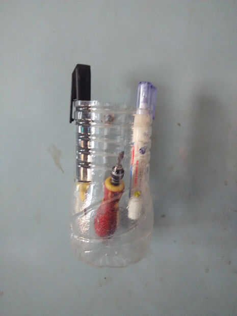 Poner su diario elemento útil dentro de nuestros usos múltiples. Ya que contamos con botellas de pet transparentes podemos encontrar fácilmente nuestra cosa este soporte multiuso.