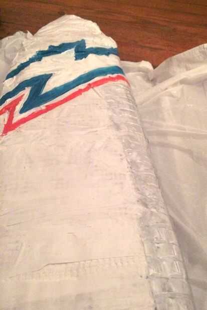 Una vez que la pintura esté seca, es hora de añadir que tiras de plástico de las botellas de agua.