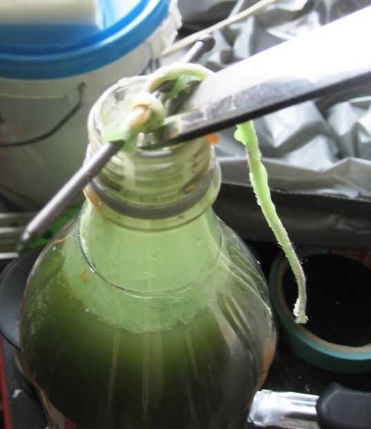 Usar el cuchillo exacto para hacer un corte diagonal en la parte superior de la botella