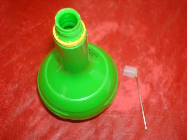 Mi suegro descubrió una manera de reutilizar botellas o para riego por goteo. Esto es cómo. Los materiales son botellas vacías, palillo de bambú, hisopo de algodón (bastoncillos de algodón) y cadena. Las herramientas son de tijera, pinza, clavo, cuch