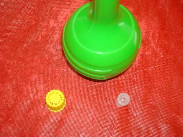 Meter la aguja en la tapa y hacer agujeros alrededor de la tapa para hacer la coctelera.