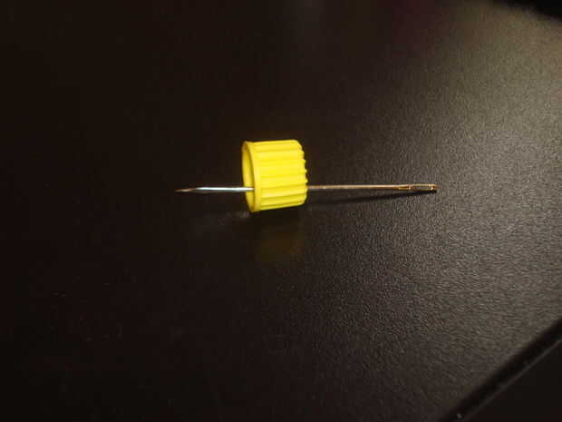 Sujete la aguja en la llama para obtenerlo suficientemente caliente como para derretir el plástico.