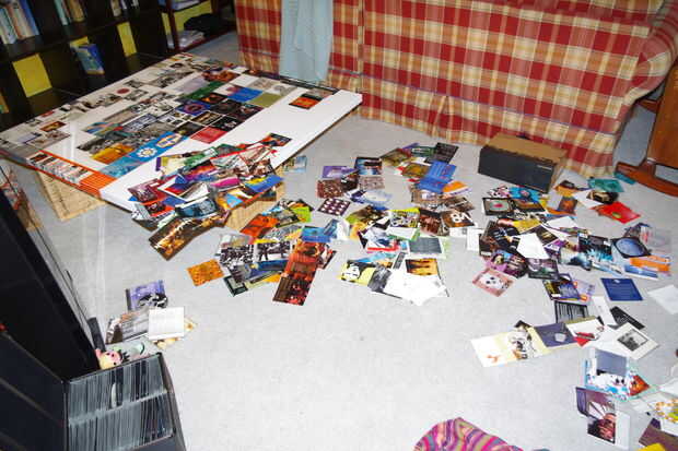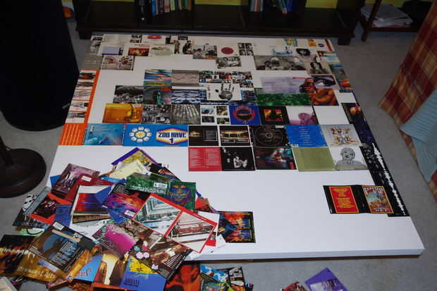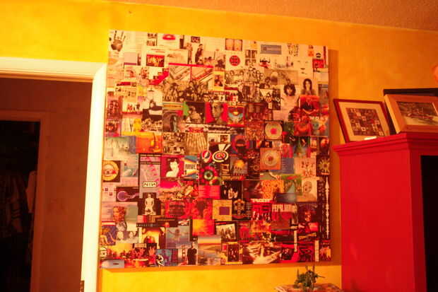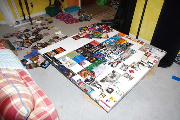 Tuve una idea como fui de condensación mi colección de CD en una caja de archivo. La idea era mostrar todas estas carátulas en un collage gigante. Así que fui a la tienda de arte local y compró un lienzo de 48 "x 48".
