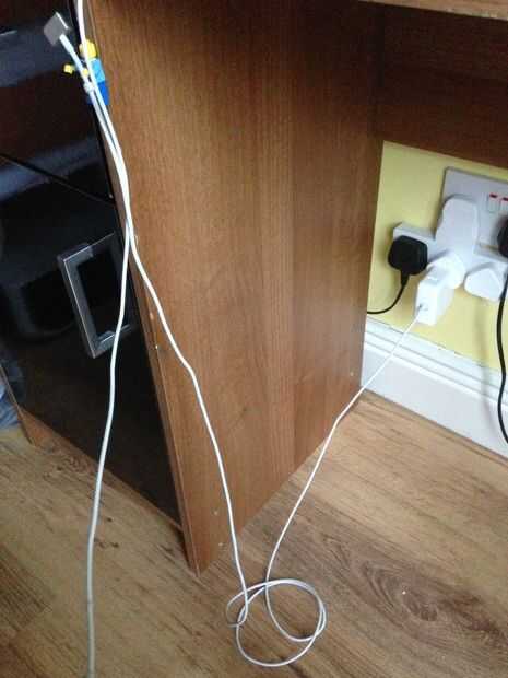 Si tiene cables largos detrás de su escritorio, puede utilizar un anillo usado cellotape para acortarlo y hacerlo mejor.
