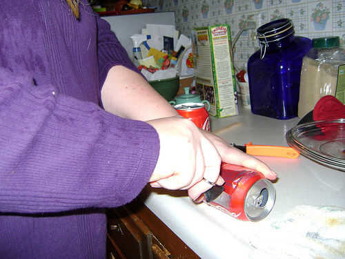 Usar latas de aluminio para fundir las ceras en. Lo primero que hago es cortar las tapas. Necesita lo suficiente para que ellos se embalan firmemente bastante en la olla que se caigan, utilicé 8. Los cortes superiores será fuertes.