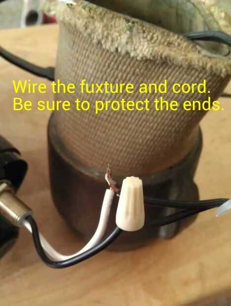 Cableado de estos equipos de la lámpara es muy fácil. Poner los extremos del alambre, de la máscara y el acoplamiento, usando las tuercas para alambre. Circuitos sencillos, como este, no debería importar que los cables coinciden. Trenzados entre sí los dos cables, colocar una tuerca de cable sobre la conexión y repite lo mismo en los otros dos cables.