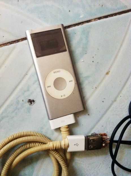Primero probado en multímetro, seguido en iPod nano 2da gen y luego para la prueba final, probado en el iPhone. Entonces lo envolvió para arriba con cinta aislante.