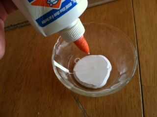 * Vierta una pequeña cantidad de agua en un tazón pequeño y agregue el pegamento, mezclar hasta combinar bien