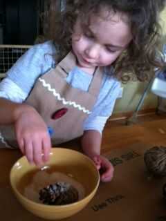 Permitir el control total del niño, esto puede ser difícil para algunos de nosotros. Que recoger los conos de pino, pintar sobre el pegamento y el rodillo o les sumerja luego en el azúcar de brillo o colores