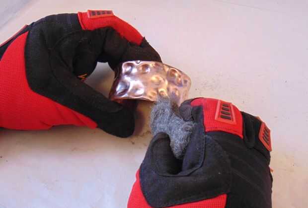 -Una vez que tu pulsera ha sido formado (¡ HURRA!) usar lana de acero * use una máscara antipolvo, sus pulmones le gracias * para quitar cualquier escala que se ha desarrollado en tu pulsera.