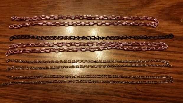 • Cinco cadenas; Cuatro tienen que ser suficientemente largo para envolver la muñeca dos veces, y uno sólo debe envolver una vez. En mi caso, el color de rosa y oro envuelto dos veces y una vez negro.