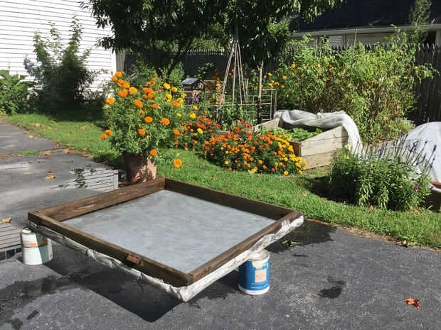 El marco de frío construí hace 25 años sigue siendo gran trabajo (visible en el fondo de la foto). En mi caso, la tapa del marco frío utiliza 1/2" acoplamiento hardware paño de alambre conectado a la parte superior, que a su vez soporta una capa de aire y el agua permeable tela de la cubierta fila cortado a la medida. Durante la primavera fría noches cuando las plántulas están endureciendo apagado pero todavía necesitan protección antiheladas, colocar un trozo de plástico transparente encima de la tapa (cubierta sobre los lados y con un ponderado dobladillo para evitar que vuele en el viento) para aumentar el valor del aislamiento. Cuando el tiempo se ha estabilizado el plástico sale, pero la tapa cubierta de tela todavía da a las plantas cierta cantidad de seguridad de una helada tardía, así como la protección del insecto y depredador. Cuando la protección es ya no cumplire separar la tapa con bisagras de la pared posterior de la estructura fría y guárdelo.