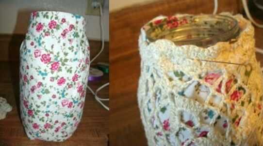 Para uno de los frascos, elegí un suéter que fue punto libremente, por lo que necesita a tela debajo para ocultar la jarra. No pude encontrar una manga de la camisa que me gustó usé un pedazo de un vestido viejo.