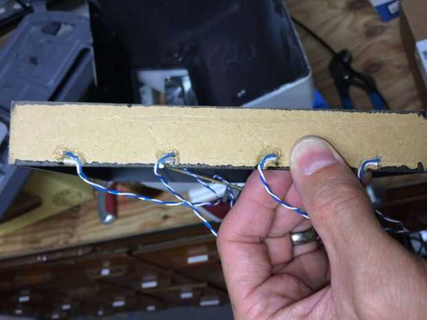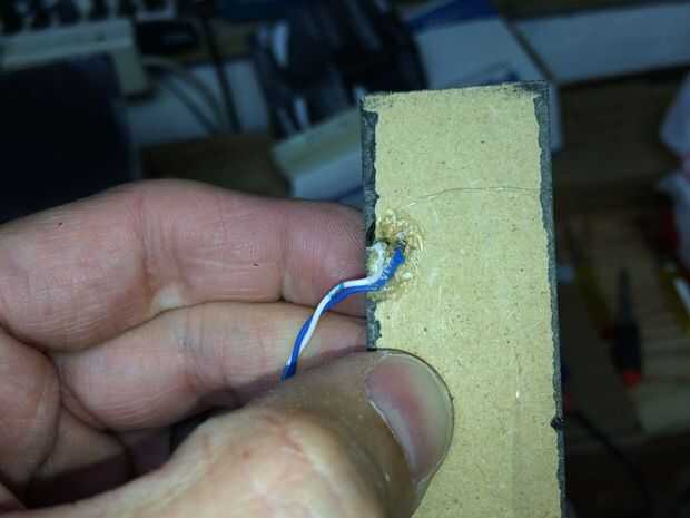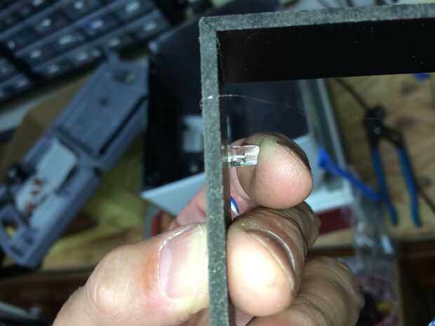 He instalado el marco separador en el marco externo pero los LEDs indicados en cada cual dirección puesto que nada les era sujeta en su lugar. Ya que yo encuentra el LED cerca de la imagen, aparecen como pequeños focos en el cuadro y lo realmente cuestiones que son todas rectas. Si el tuyo lugar más lejos de la imagen puede no importa tanto. Empuje firmemente hacia abajo en su lugar, mientras que simultáneamente los LEDs (suavemente) tirar los cables por los agujeros, cuando está pegando el cableado para que sostenga el LED en su lugar. Luego pegamento liberalmente caliente los cables en el canal que hizo y esto debe mantenerlos todavía. Puede doblar para punto recto después de que el pegamento se haya secado.