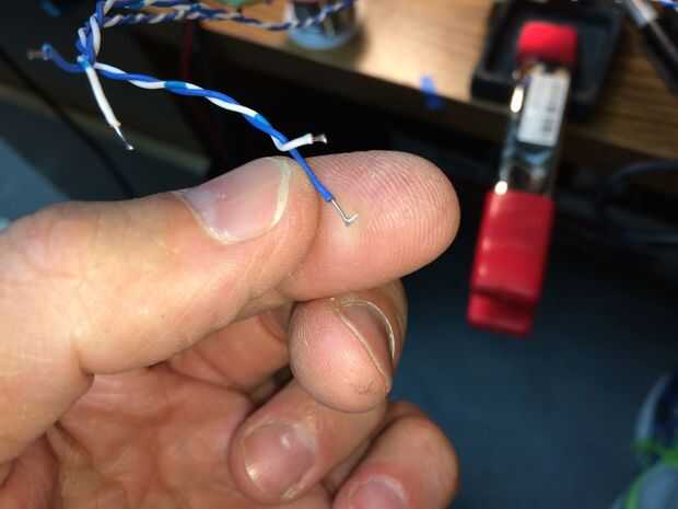 Estañado está derritiendo la soldadura para que cubre los extremos del alambre. Una vez que la soldadura ha "adherido" a un cable es mucho más fácil soldar ese cable a otro cable. Ya que no queremos que se recaliente nuestro LED queremos los empalmes de la soldadura para fijar tan rápido como sea posible y estañar los cables nos ayudará mucho. Las patas del LED ya han sido estañadas ya fueron soldadas en la placa de circuito. Tenga cuidado de no dejar un pegote grande de soldadura en ellos aunque, o no se ajustan a través del orificio.