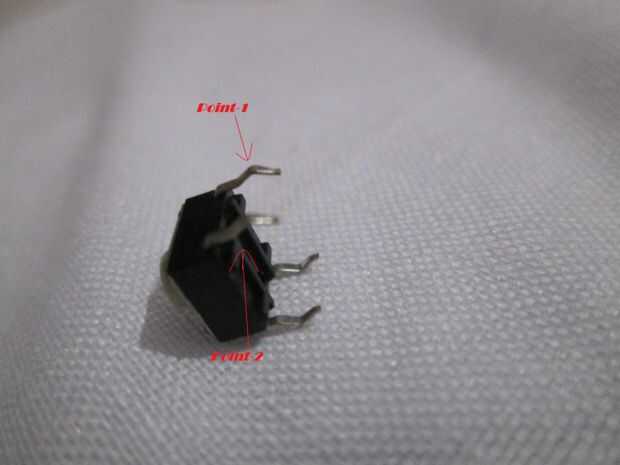 Paso 2-ahora tome el pulsador y el par de pines de prueba con la ayuda del voltímetro. Romper los terminales del resto que no son necesarios.