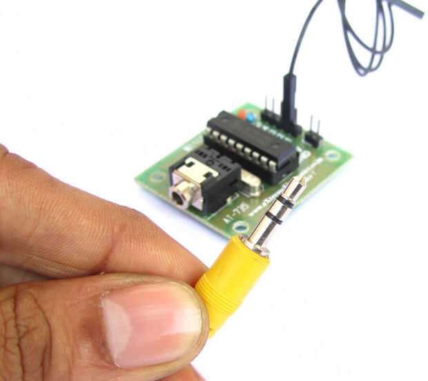 3) ahora conectar a jack de 3.5mm al módulo DTMF y teléfono móvil