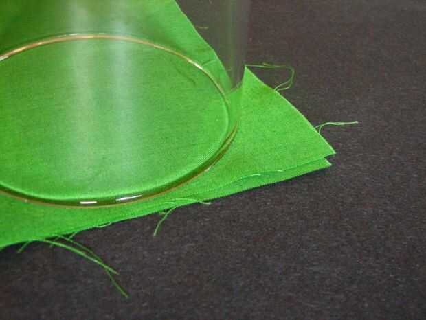 B. Coloque uno de los rectángulos de tela metálica y coloque un vaso junto a la esquina superior derecha, como se muestra.