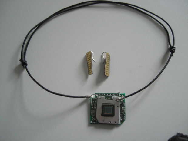 Teníamos una cámara digital muy vieja ahí, que ya no funciona por lo que mi novio decidió tomar aparte. Cuando él tuvo alle la scatteret de piezas en la mesa del comedor, tomé mi selección de las piezas que tenía el potencial de la joyería. Aquí te voy a mostrar cómo hice un collar simple de un circuito y pendientes de memorycard vieja que hemos rescatados de la cámara.