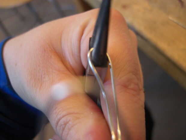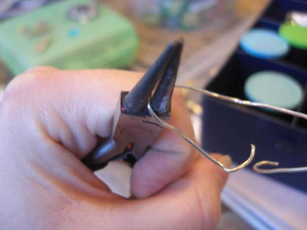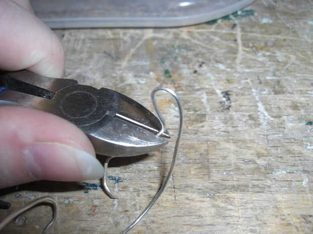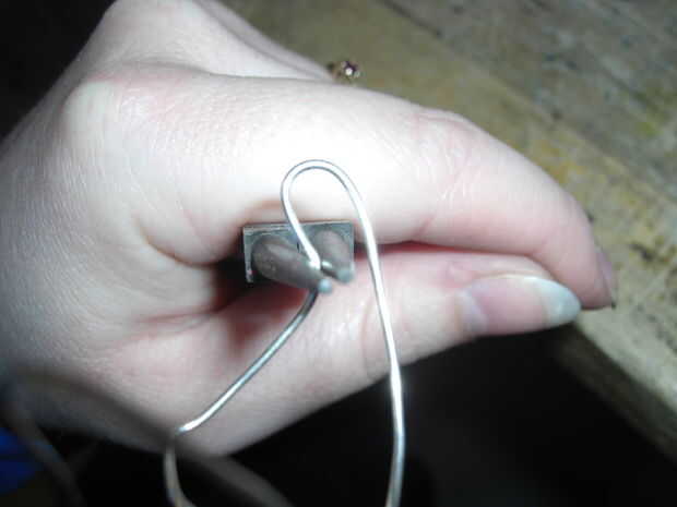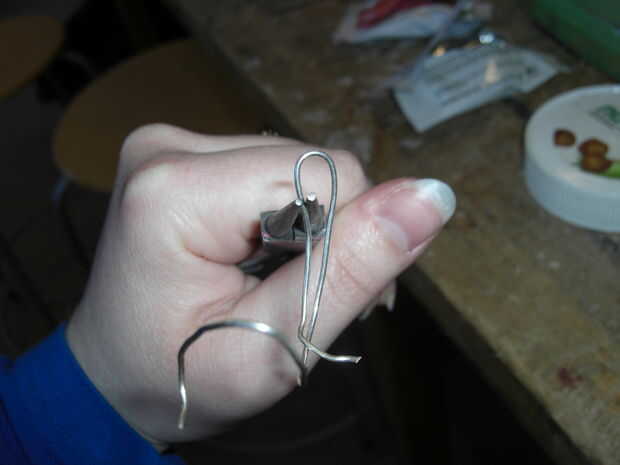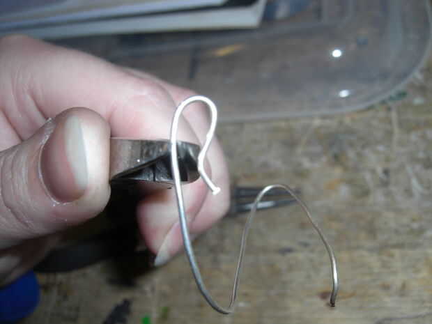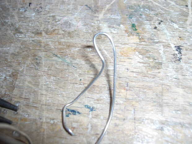 Tomé un alambre de plata que tenía a lo mintiendo alrededor y, con los alicates de punta redonda, bendt en la forma como las fotos de arriba. La razón por la que no hago los posts de oído derecho, es porque no sé cómo hacer que las tuercas de oreja y así encontré los ganchos de una alternativa mejor.