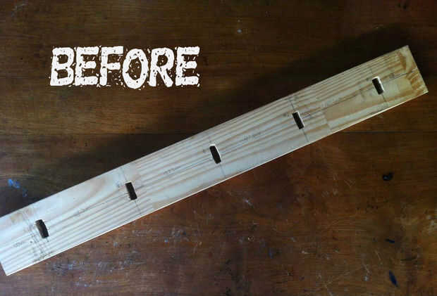 Lijado es más desperdiciador de tiempo que he hecho, teniendo en cuenta que sólo tenía un pedazo de papel de lija. Pero es necesario quitar la laca barata usada en perchas, también lija la madera contrachapada que tenía para deshacerse de cualquier suciedad o manchas que había acumulado durante los años de sentarse en mi garaje. Si usted posee un eléctrico o lijadora de la correa, uso siempre que sea posible.