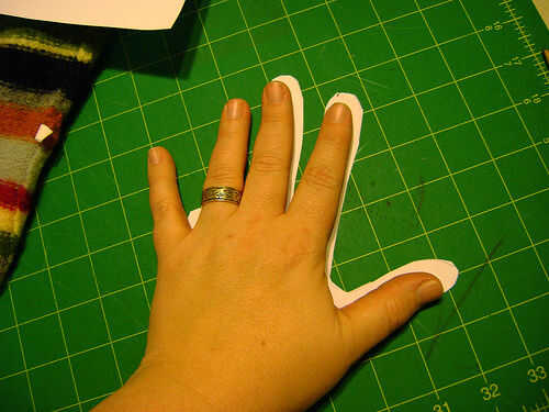 Quería utilizar un guante como forma para crear esta ave fina así que me puso mi mano en una hoja de papel y remontarlo. Sabía que sólo quería 2 cuelga superior y un pico i había editado los dos últimos dedos.