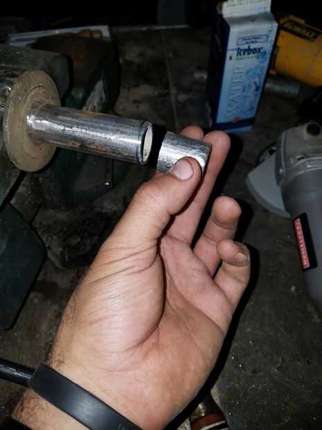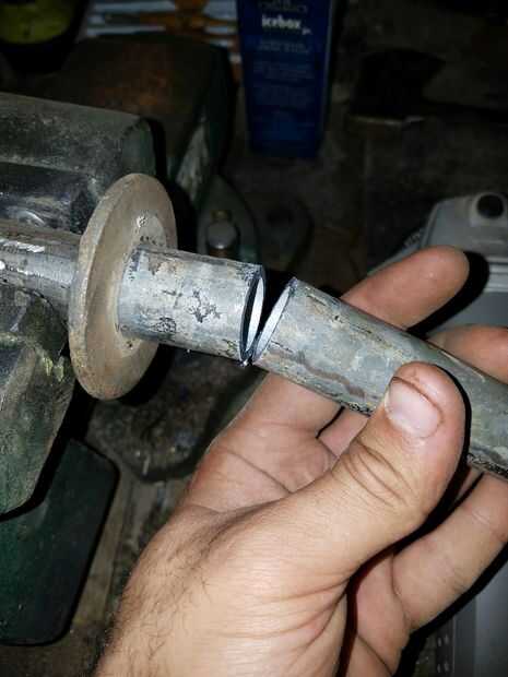 Después de instalar la lavadora, es el momento de medir. Coloque la rueda en el tubo y la espera hasta la rueda, medida una vez cortado. A continuación Mida la longitud del centro de la voluntad y corte el tubo de la longitud. Luego lije con una lija de 220 grano.