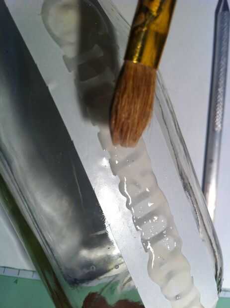Aplicar la crema de grabado sólo a las áreas que desea grabar. Aplicar liberalmente con un pincel suave.