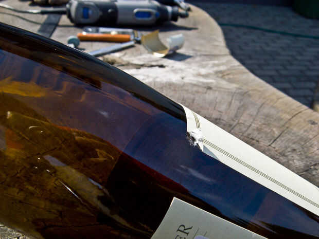 Para cortar una botella, usted tiene que encontrar una primera. Si usted está bebiendo el vino para obtener la botella vacía, por su propia demora de seguridad cortando hasta que esté sobrio. Cuchillas y bordes afilados no se mezcla bien con la intoxicación. Luego necesita quitar las etiquetas y hacer tan con eficacia usted determinar cómo se pega en.