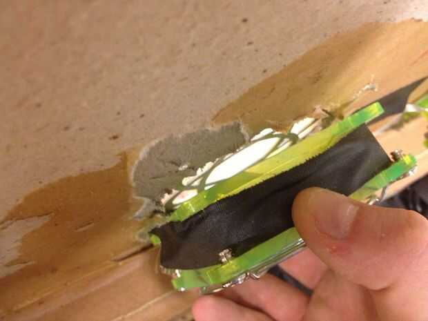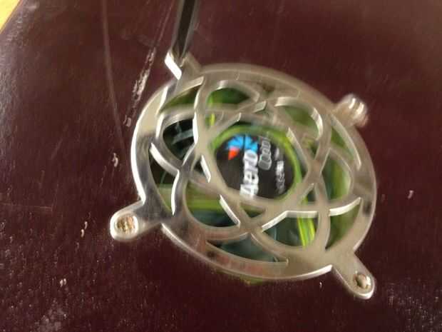 Cuando tenga los orificios cerca del tamaño del diámetro interior del ventilador, prepárate fijarlos. Que tenga agujeros guía para los tornillos del ventilador penetrar una pizca. Además, este es un buen momento para elegir sus direcciones de flujo de aire. Te recomiendo un aire empujando y uno tirando aire hacia fuera (sólo para mantener las cosas fluir).