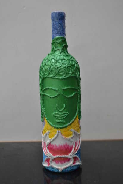 -Como se puede ver. He pintado una ilusión de estanque de Lotos en la mitad del frasco y usa pintura verde metalizada para la cara de Buda.