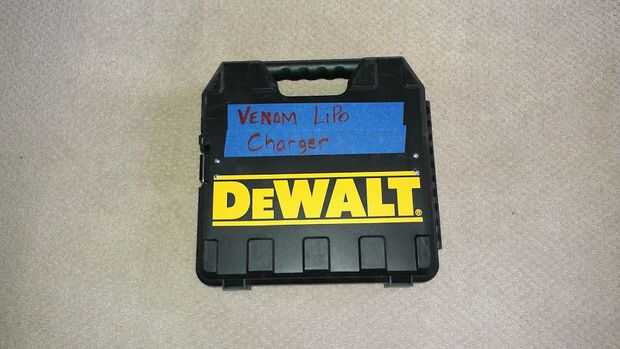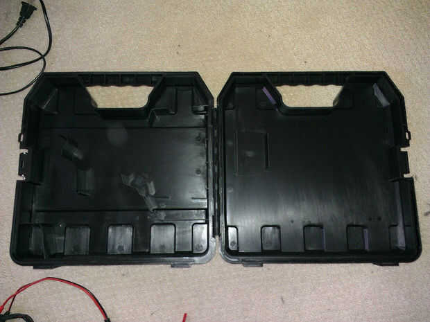 En el último concurso, me di cuenta de soluciones un par otros equipos. Un equipo montado su cargador en el interior de una maleta vieja, que me puso a pensar: algunas de mis herramientas de poder vinieron en casos con bisagras, que se lanzaron solo en la esquina de recolección de polvo (demasiados problemas para poner la herramienta, en el caso!). Así que aquí está mi solución para la reutilización de un caso de taladro DeWalt como un organizador para mi cargador de batería. La misma idea debe trabajar para varios modelos de cargador y estilos del caso.
