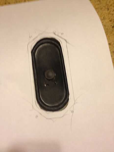 Una vez seleccionado un altavoz que va encaja en la lata, crear una plantilla del altavoz a transferir a la lata. Trace una línea alrededor del altavoz y luego recortar la plantilla. Cortar el centro al tamaño el tamaño del agujero.